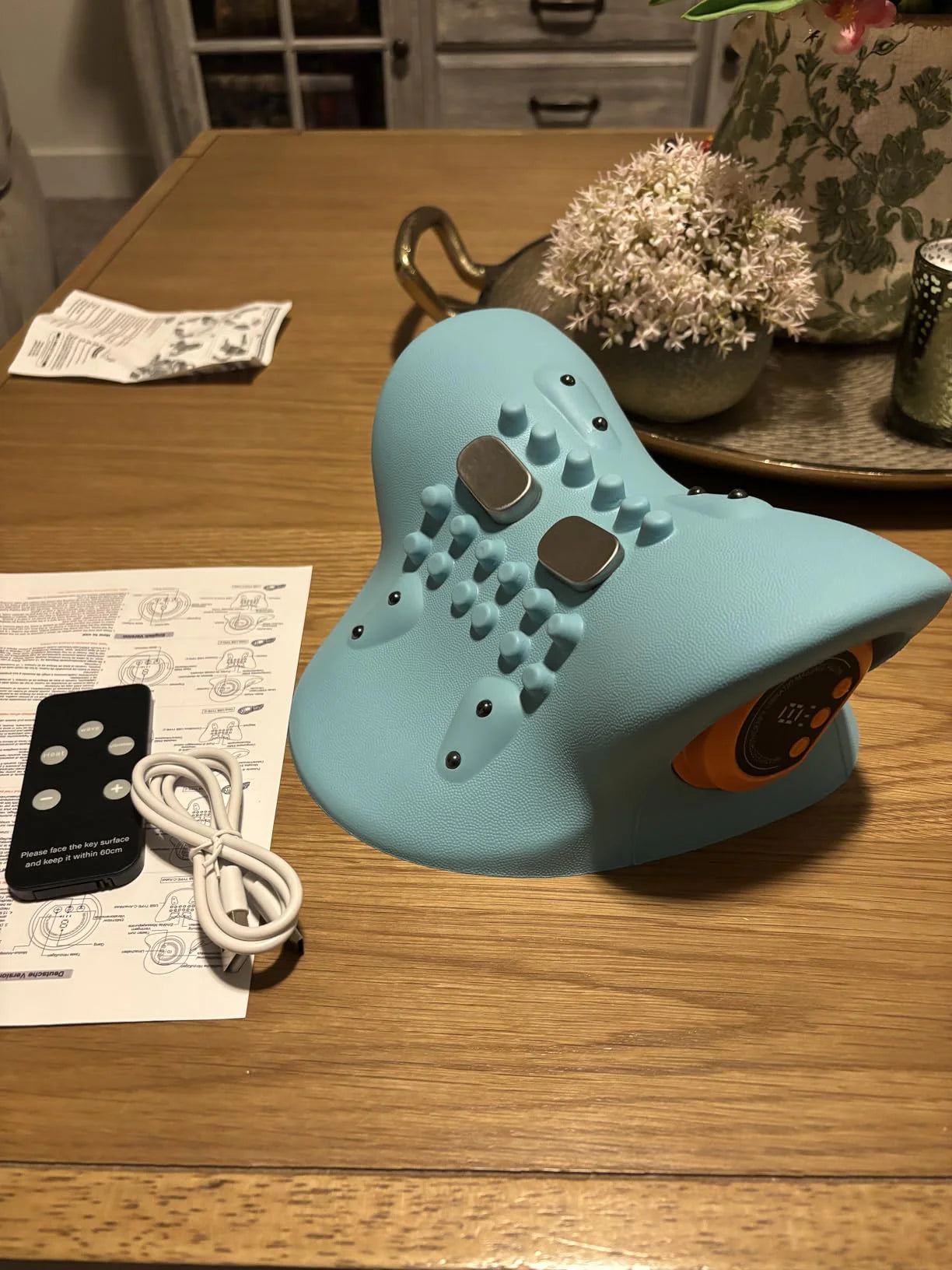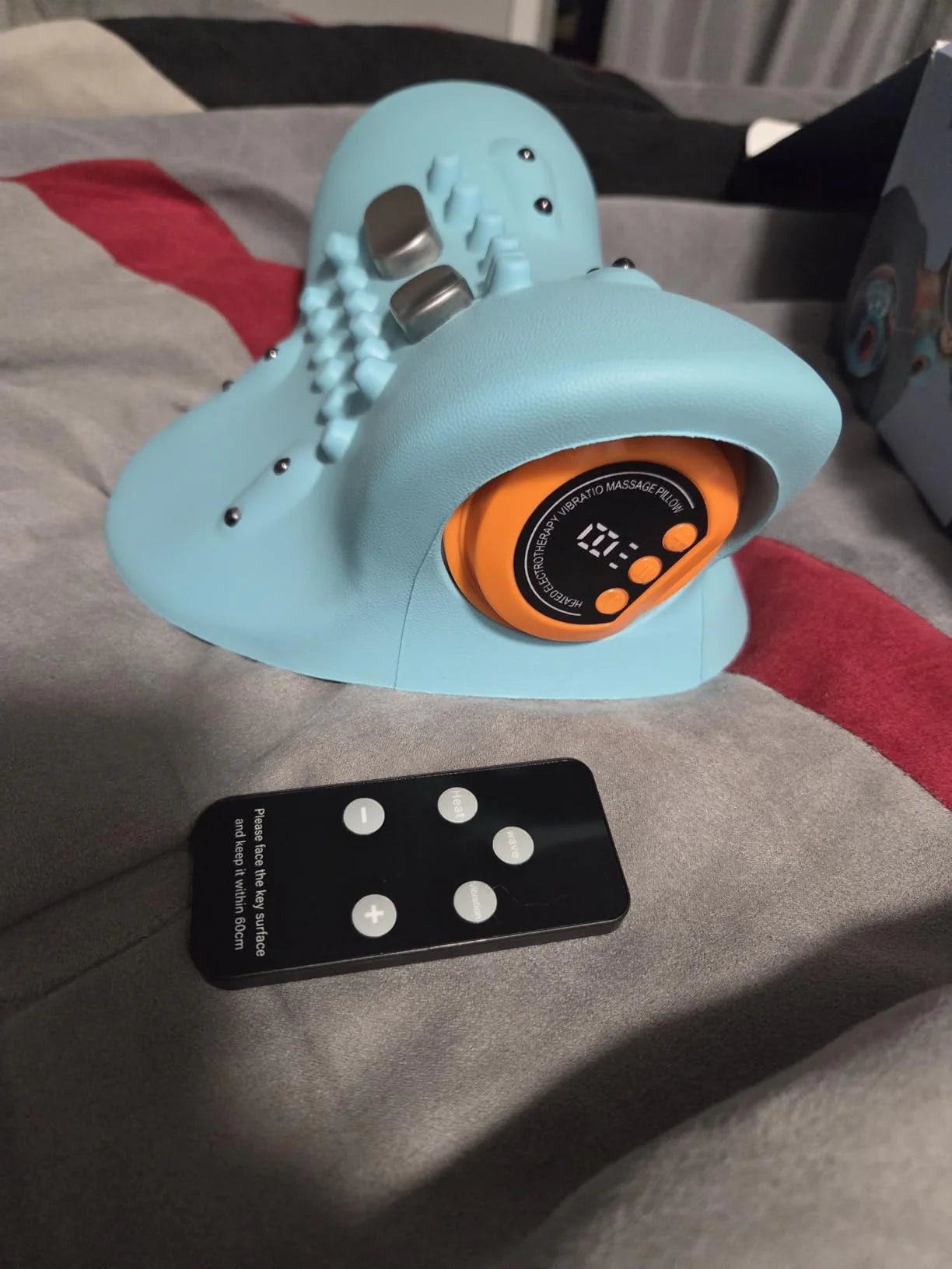 Laying down on the Hugterra Massager for just 15 minutes a day progressively improves blood circulation, relaxes the tight muscles, restores the natural curvature of the neck and eliminates neck pain by using the combined power of massage, stretching, EMS and heating.